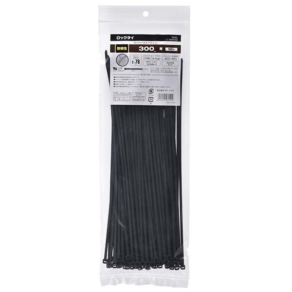 結束バンド ロックタイ 300mm 耐候 黒 100本入り LT-300W100BK 04-3140 オーム電機