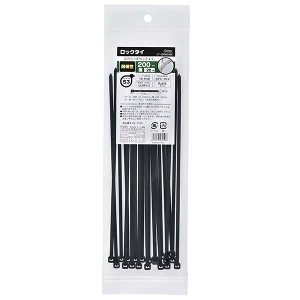 結束バンド ロックタイ 200mm 耐候 黒 20本入り LT-200W20BK 04-3150 オーム電機