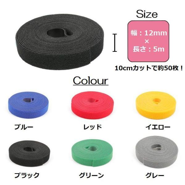 マジックバンド 結束テープ マジックテープ カット可能 結束バンド たっぷり使える長さ 5m ケーブル まとめる 束ねる 配線 コード 固定 強力