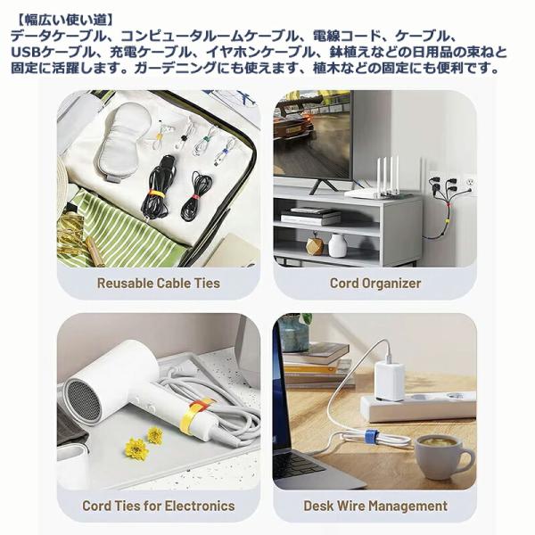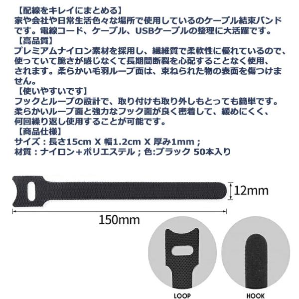 【50本】 ケーブルバンド ケーブル結束バンド 面ファスナー ナイロン製 収納バンド コード配線収納 ケーブル束ねる 収納 12mm×15cm 黒 白