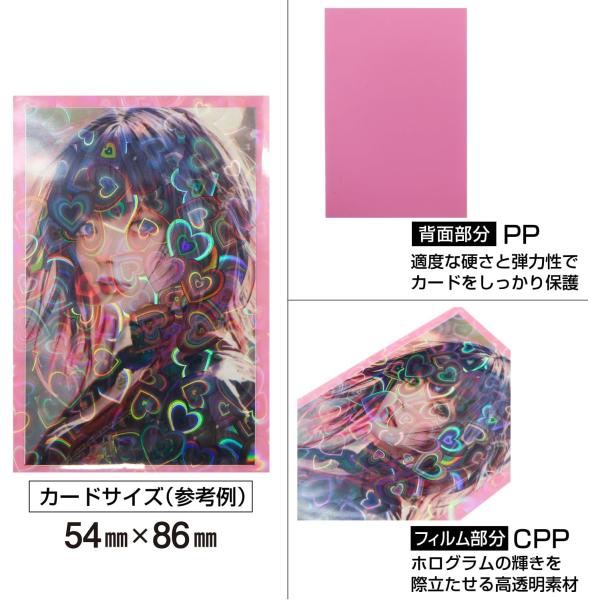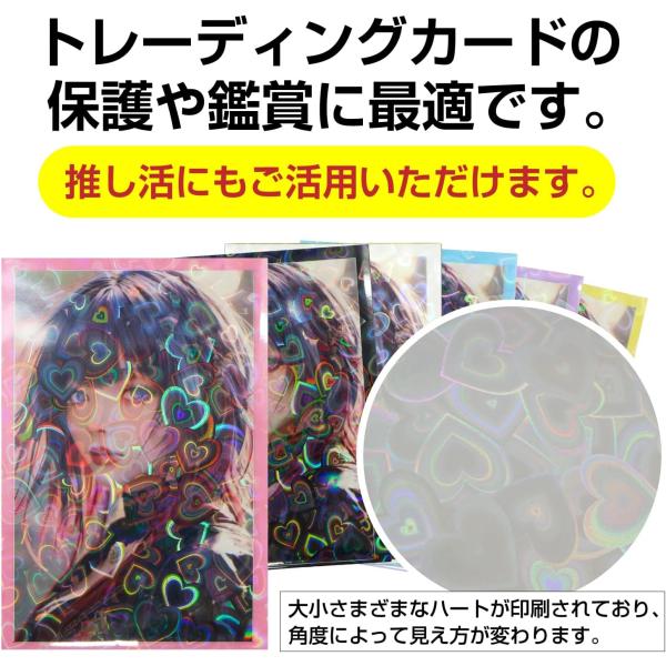 カードスリーブ ホログラム ハート 柄 ピンク 61x91mm 50枚入り 大容量 K-POPトレカ フォトカード チェキ 推し活 トレカ 保護 きらきらぷんぷん丸 TRC-011