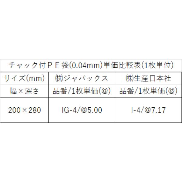 ジャパックス チャック付きポリ袋 IG-4(2500枚/1ケース) 送料込 沖縄・離島地域配送不可
