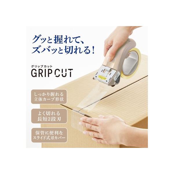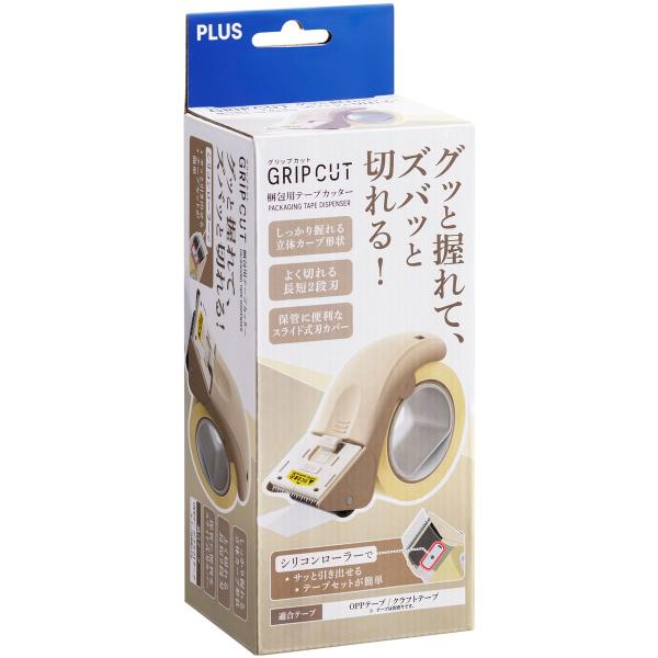 プラス 梱包用テープカッター グリップカット ベージュ TC-500P 31498 梱包用テープカッター ガムテープ 粘着テープ 梱包
