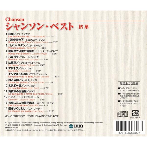 【おまけCL付】新品 シャンソン・ベスト 枯葉 (CD) AO-202