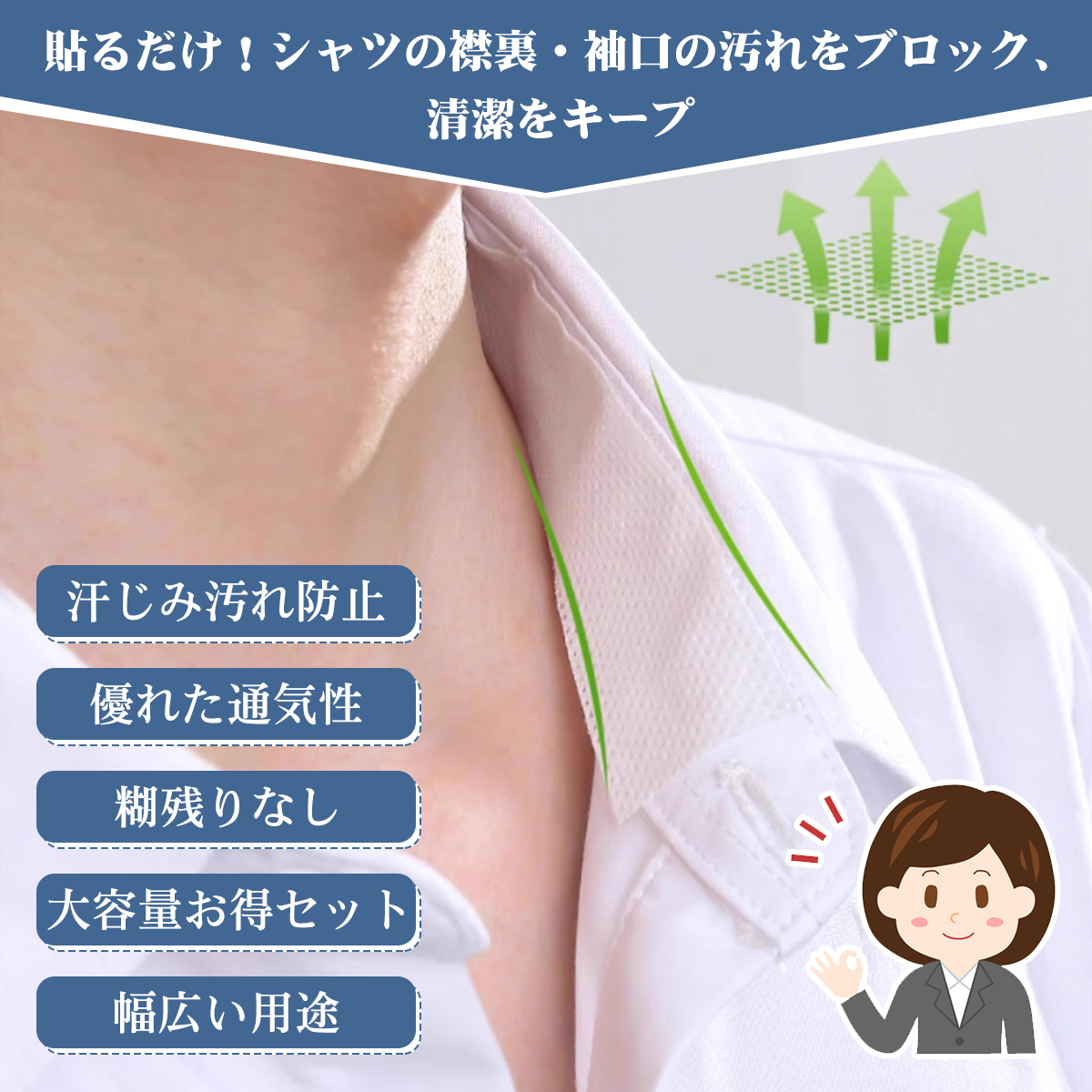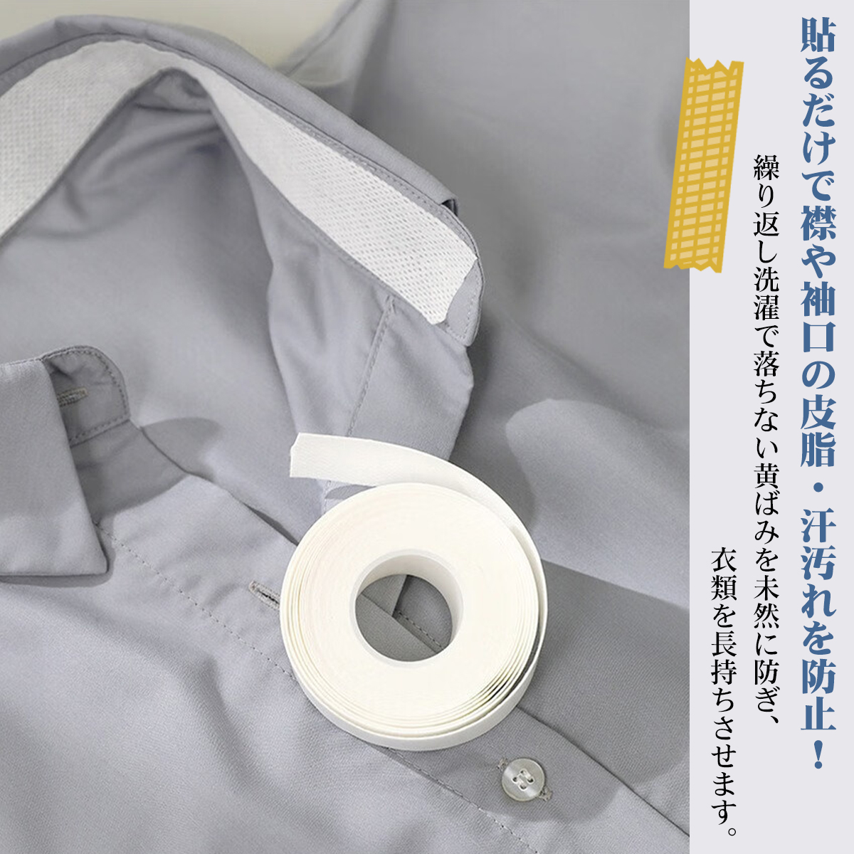 汚れ防止テープ 汗じみ汚れ防止 汗取りパッド【2.5cm×5m×15巻】大容量お得セット シャツ 襟 そで ガードテープ 不織布 使い捨て 貼るだけ 防臭 汗取りパッド