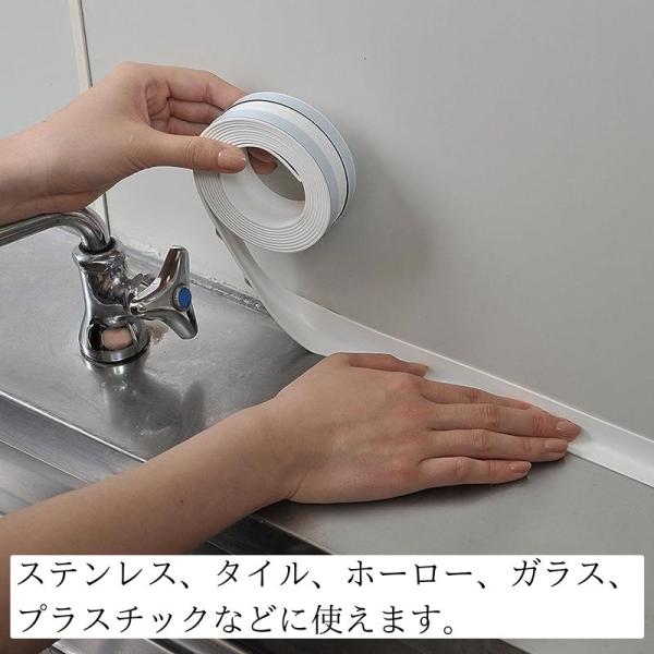 貼り直しのできる水もれシャット 浴槽 洗面台 洗面所 キッチン すきま 水漏れ 隙間埋め 隙間テープ 水回り 塞ぐ 埋める 防水テープ 日本製 メール便