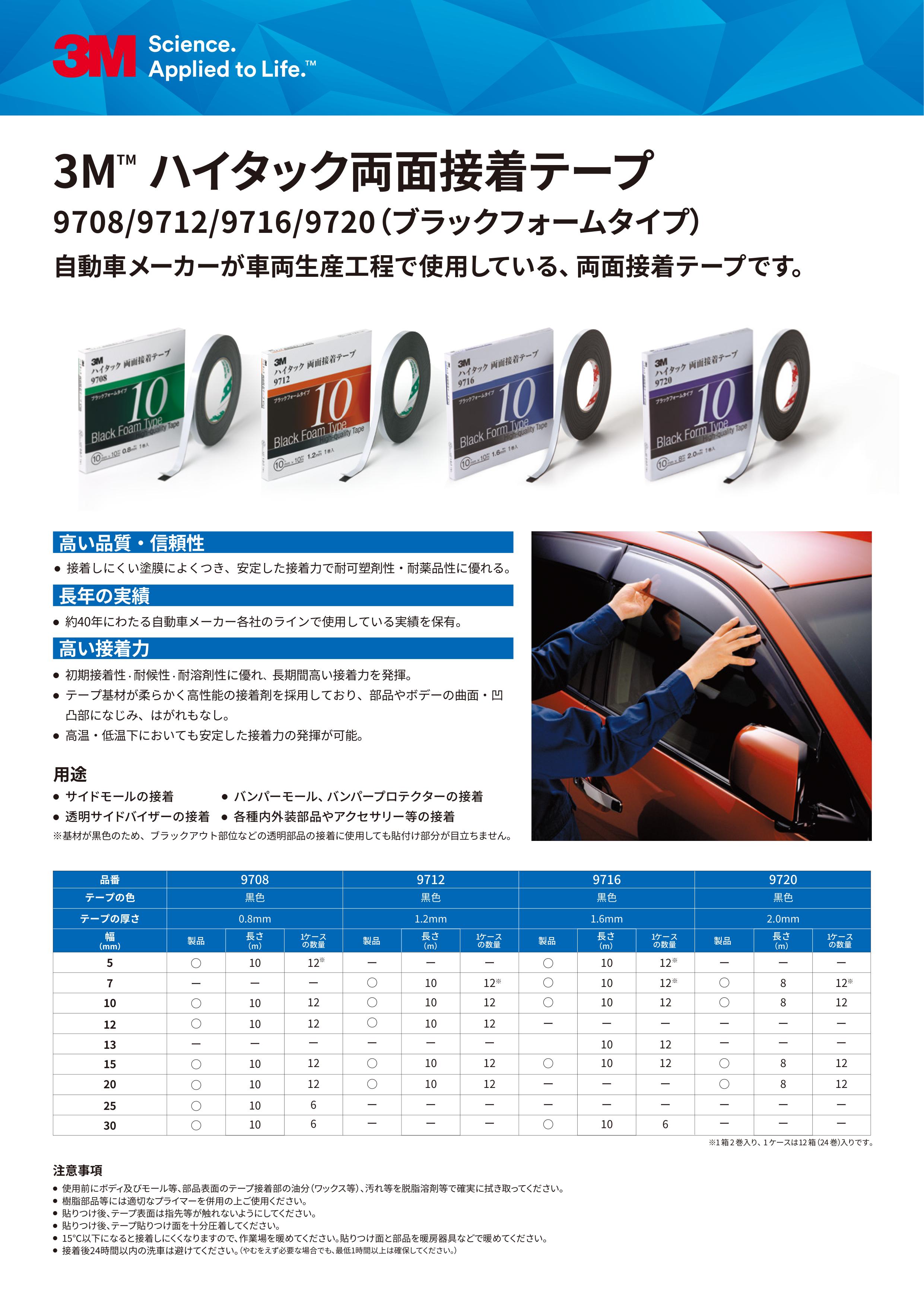 3M ハイタック両面接着テープ 9708 全7幅 両面テープ 高接着力 自動車用接着テープ サイドモール接着 バンパーモール接着 内外装アクセサリー接着