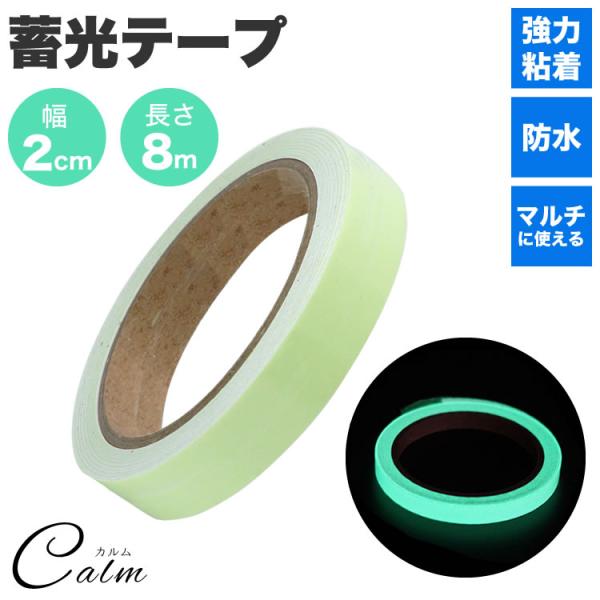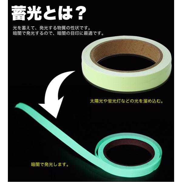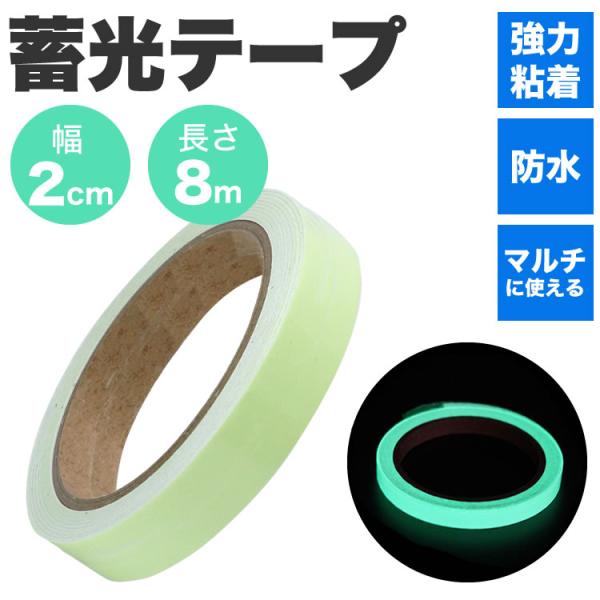 蓄光 テープ 発光テープ 夜光テープ 8m 幅2cm シール 階段 手すり 目印 夜間に光る グリーン 防犯 防災 非常口 安全対策