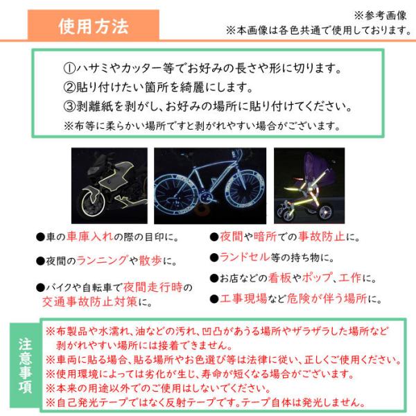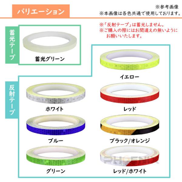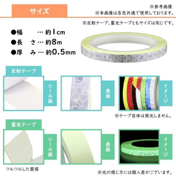 反射テープ 幅 1cm 長さ 8m 夜光 蛍光 リムストライプ リア リフレクター 目印 追突防止 反射シール バイク 車 自転車 防犯 通勤 通学 夜間
