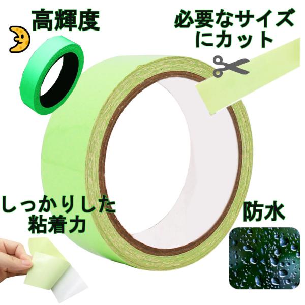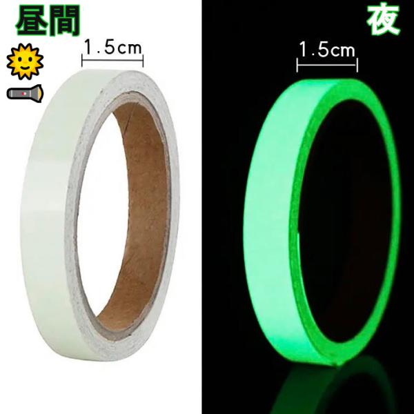 夜光テープ 幅1.5cm×3m 蓄光テープ 防水 海 安全テープ カット シール 蛍光 防災対策 自転車 ペット 散歩 防犯