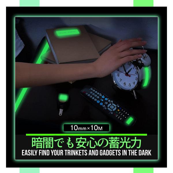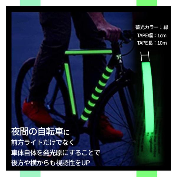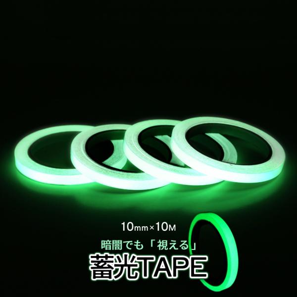 蓄光テープ 10mm 10m 屋外対応 光る テープ 蓄光 発光 夜光 蛍光 長時間 高輝度 階段 手すり 足元 自転車 非常時 夜間 太陽光 暗闇 目印 転倒防止 CHITAPE-10