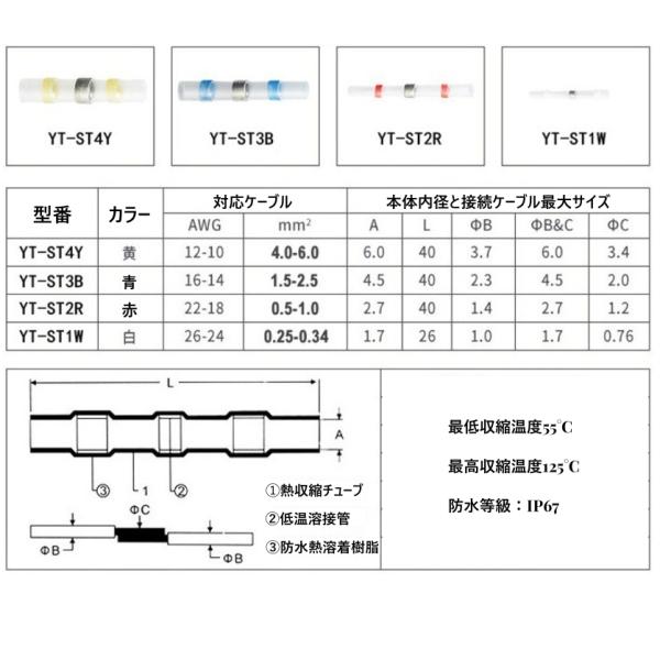 半田スリーブ 熱収縮チューブ 結線コネクタ エレクトロタップの代わりに 圧着端子 4サイズ 100個 防水 ハンダスリーブ はんだスリーブ ワイヤコネクタ電気絶縁