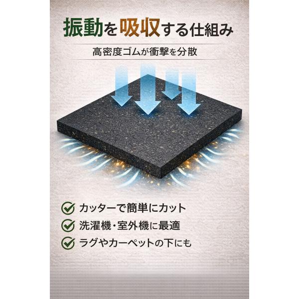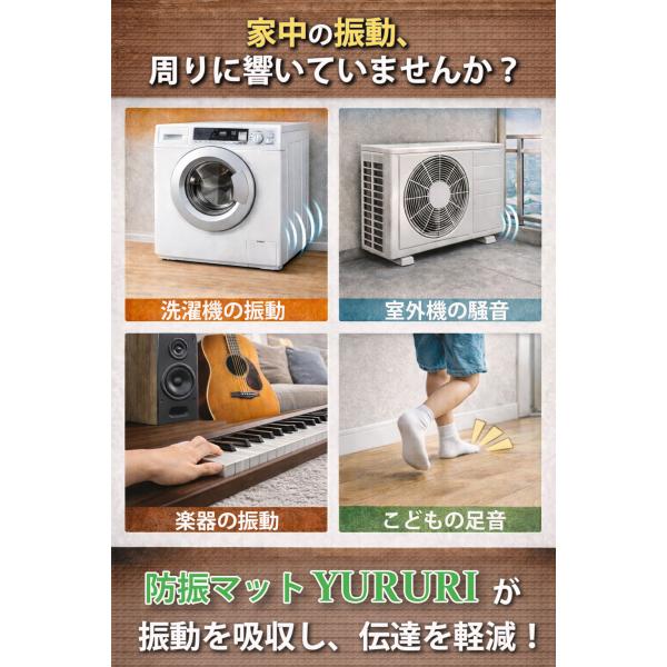 防振マット ゴム 5mm 日本製 YURURI 洗濯機 室外機 振動軽減 45.5×45.5cm