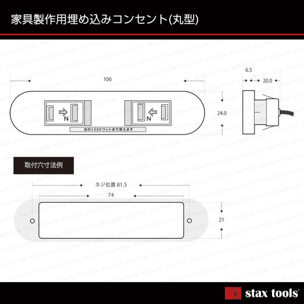 stax tools 家具製作用 埋め込みコンセント ( 2口 / 丸型 ) 人気 DIY 木工 家具 製作 DIY コンセント シンプル