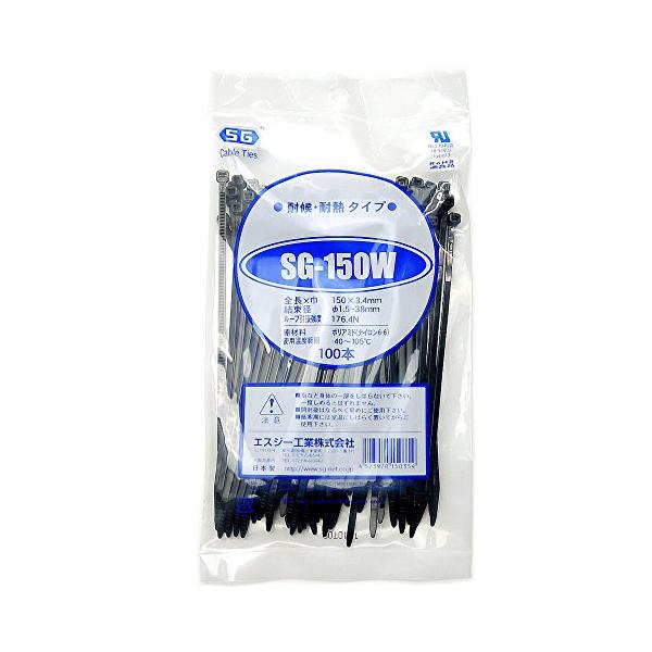 エスジー工業(SG Industrial) 結束バンド 丈夫な国内製プロ仕様 SGタイ 屋外 対候 耐熱タイプ (長さ150mm SG-150W)