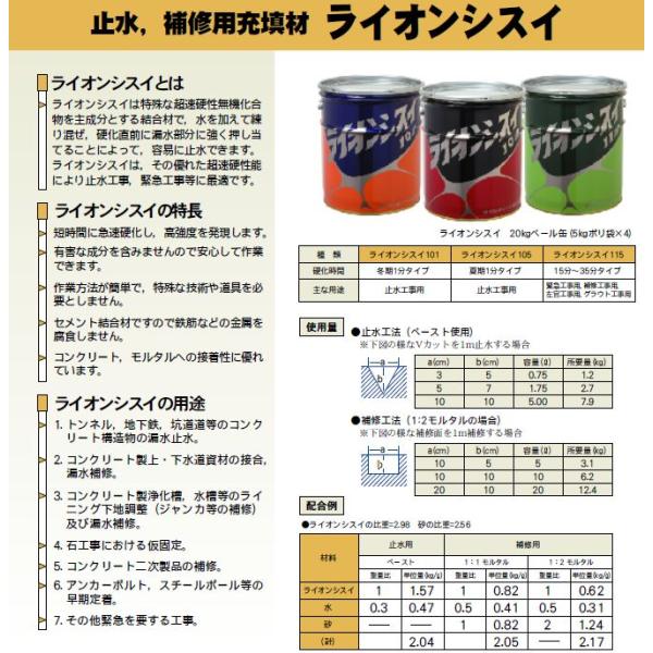 ライオンシスイ101(止水)セメント 5kgポリ袋 住友大阪セメント