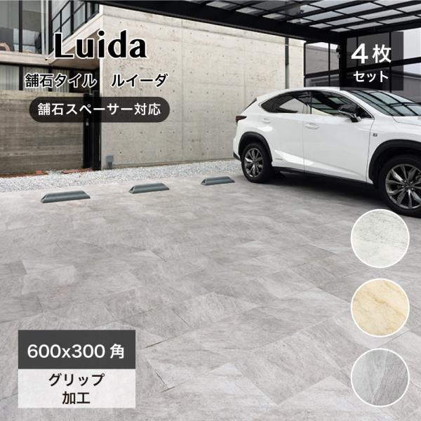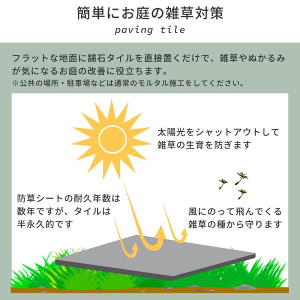 舗石タイル 床タイル 長方形 厚手 庭 敷石 置くだけ 雑草対策 防草 車両・重歩行可 アプローチ(ルイーダ 600x300角 全3色 ケース(4枚入)販売)