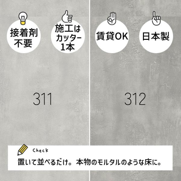 モルタルコンクリート柄 抗菌フロアタイル 置くだけ 500 x 500 x 4.5mm 8枚/ケース(=2平方m) 賃貸OK 接着剤不要の簡単施工タイル [国内工場生産/日本製]