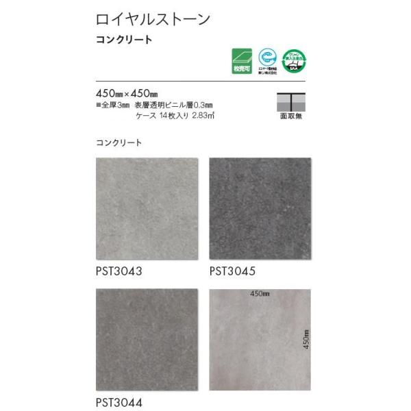 【枚売】 東リ 床材 450mm×450mm コンクリート PST3043 PST3044 PST3045 フロアタイル TOLI ロイヤルストーン ROYALSTONE