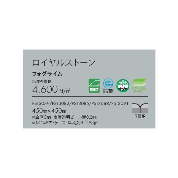 【枚売】 東リ 床材 450mm×450mm フォグライム PST3079 PST3082 PST3085 PST3088 PST3091フロアタイル TOLI ロイヤルストーン ROYALSTONE