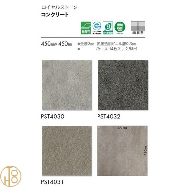 東リ 床材 ロイヤルストーン ビニル床タイル 450×450厚さ3mm 旧品番→新品番PST2053→PST4030 PST2054→PST4031 PST2055→PST4032 【ケース売】