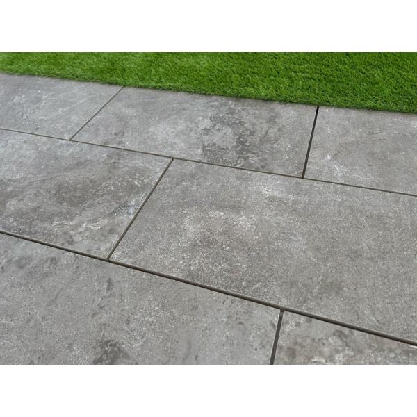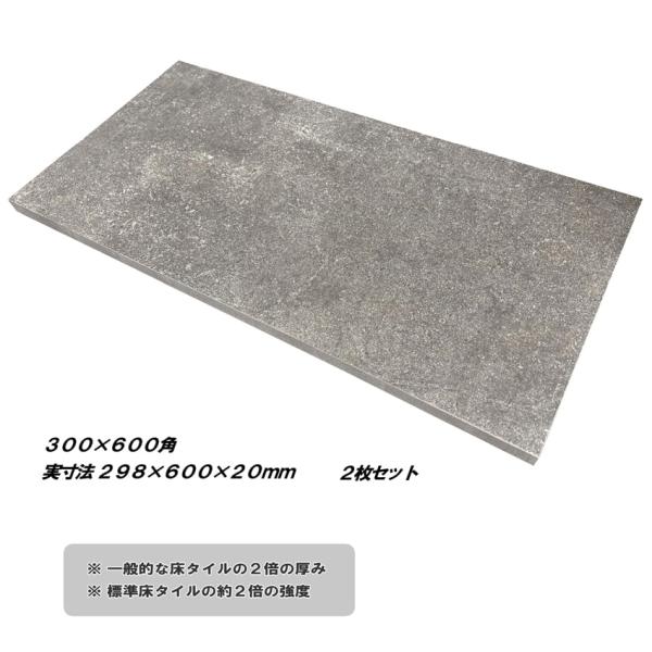 庭 タイル 置くだけ 敷くだけ 平板 敷石 グリジオクォーツ 厚物 舗石タイル 2枚セット ダークグレー タイル平板 舗石 300×600mm 20mm厚