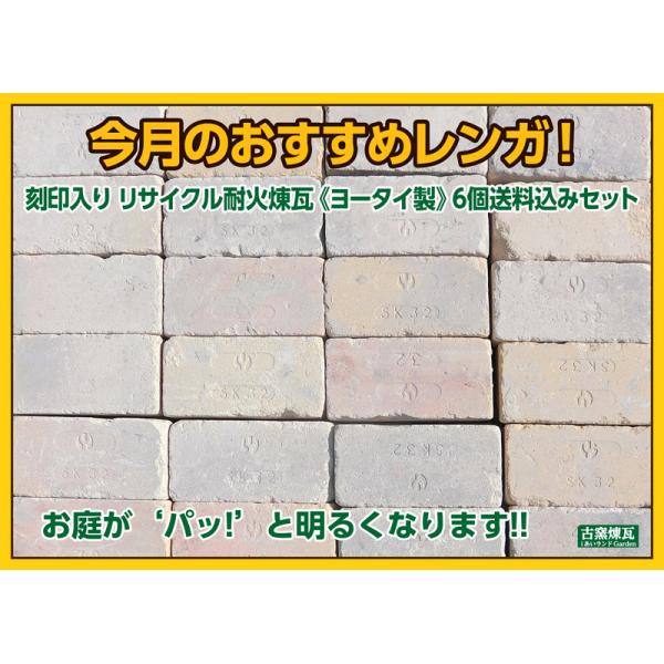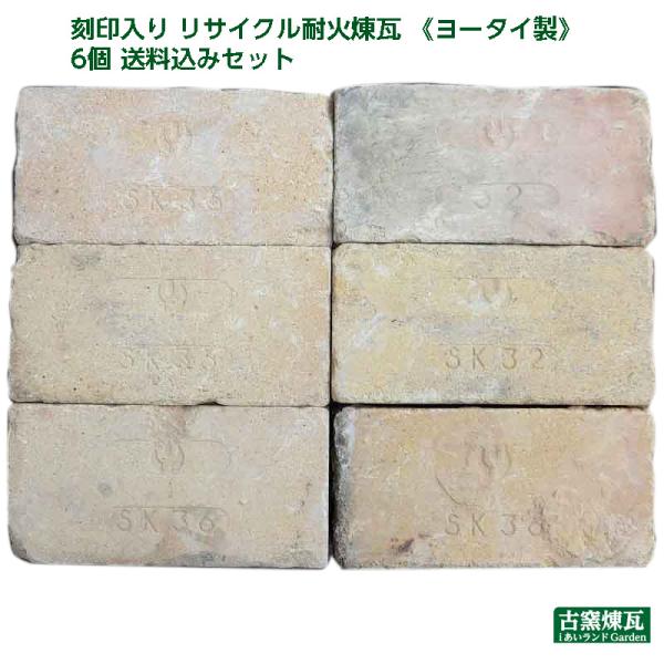 レンガ ブロック タイル アンティークレンガ ヨータイ製 ホワイトベージュ6個送料込みセット(北海道+送料300円)庭 刻印入り 耐火煉瓦 花壇 おしゃれ ガーデン