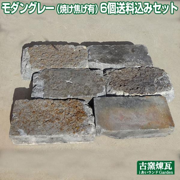 レンガ 庭 敷きレンガ アンティークレンガ モダングレー(焼け焦げ有)6個 送料込セット(北海道+送料300円)ガーデン おしゃれ 花壇 ブロック