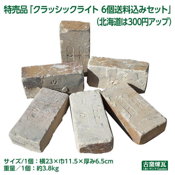 レンガ ブロック アンティークレンガ 特売品クラッシックライト 6個 送料込セット刻印1種類(北海道+送料300円)国産 文字刻印入 花壇 庭 ガーデン 敷きレンガ
