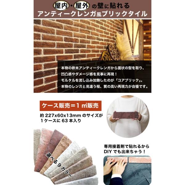 レンガ タイル ブリックタイル 壁用 レンガタイル 軽量レンガ ブリック ブルックリン アンティークレンガでお洒落にDIY(コアブリック 全色 ケース販売)
