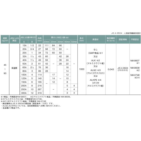 旭ファイバーグラス グラスウール保温筒ALGC貼 呼び径25Ax厚さ20mmx長さ1m