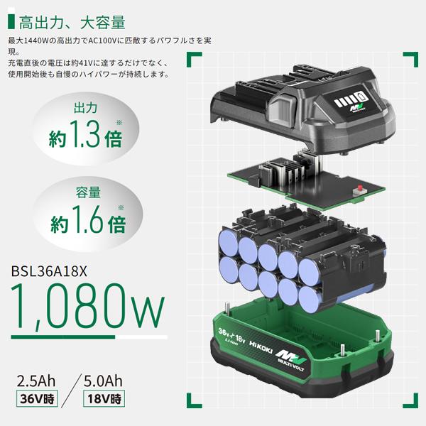 HiKOKI(日立工機) マルチボルト リチウムイオン電池 36V-2.5Ah/18V-5.0Ah自動切換 BSL36A18X 0037-9241 箱無し(セットばらし品)【在庫有り】