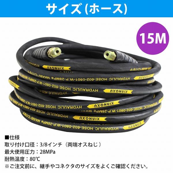 『15m』 高圧洗浄機用 高圧 ホース 3分 3/8 業務用 エンジン式 高圧洗浄機 延長 15メートル ワンタッチ 海外カプラー付属
