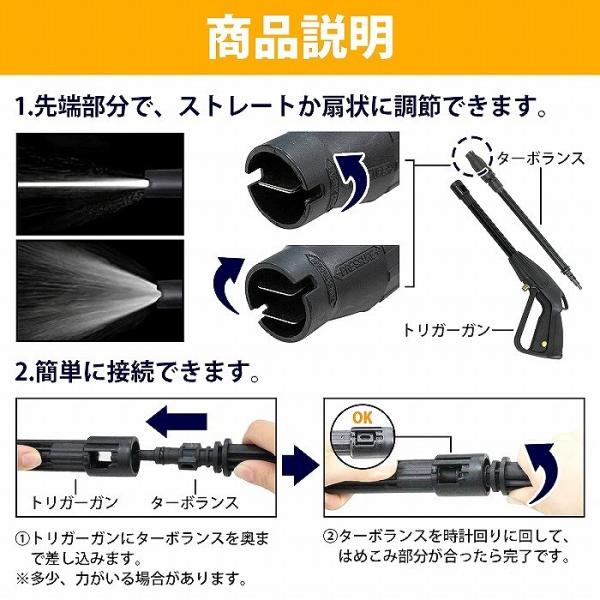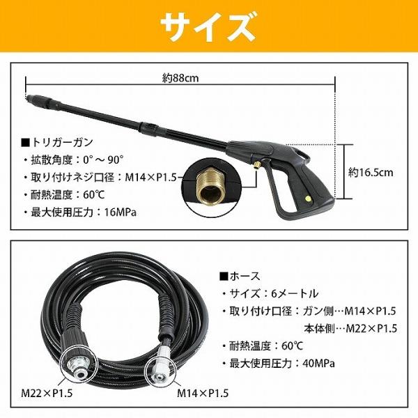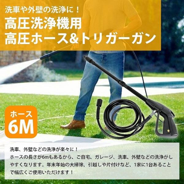 高圧洗浄機 6m 高圧ホース + トリガーガン ガン側 M14×P1.5 本体側 M22×P1.5 洗車 外壁 ガレージ 掃除 高圧 洗浄 工具 洗浄