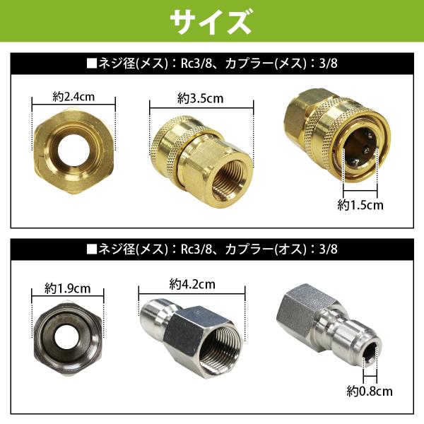 ワンタッチ カプラ 3/8 海外規格 カプラー オス メス セット アダプター 汎用 高圧洗浄機 エアーホース 高圧ホース 延長 接続