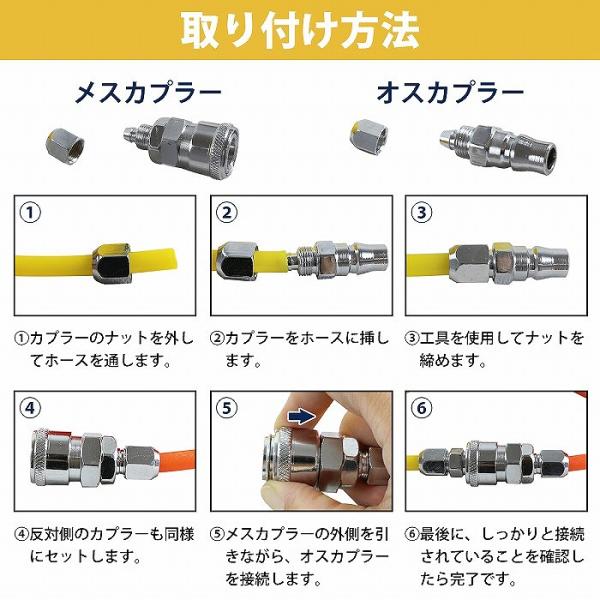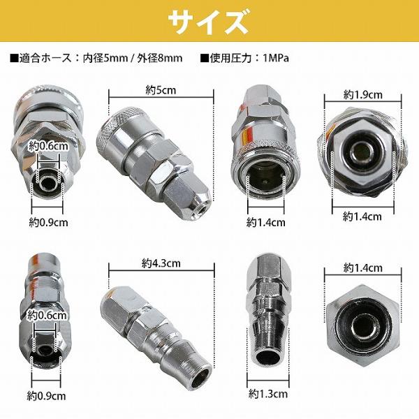 ワンタッチカプラー オス/メス 3セット 6個 内径5mm 外径8mm エアーホース 適合 エアーツール 1/4 クイック カプラ PN /SN