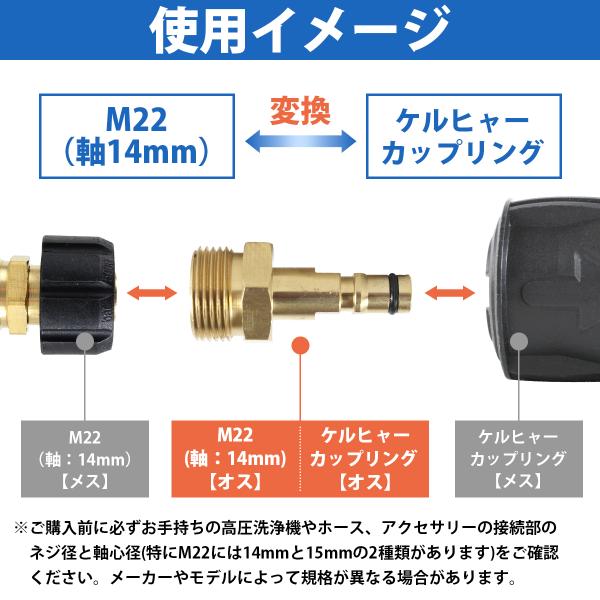 ケルヒャー Kシリーズ 高圧洗浄機 変換アダプター M22 メス → クイックアダプター オス K2 K3 K4 K5 K7