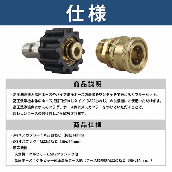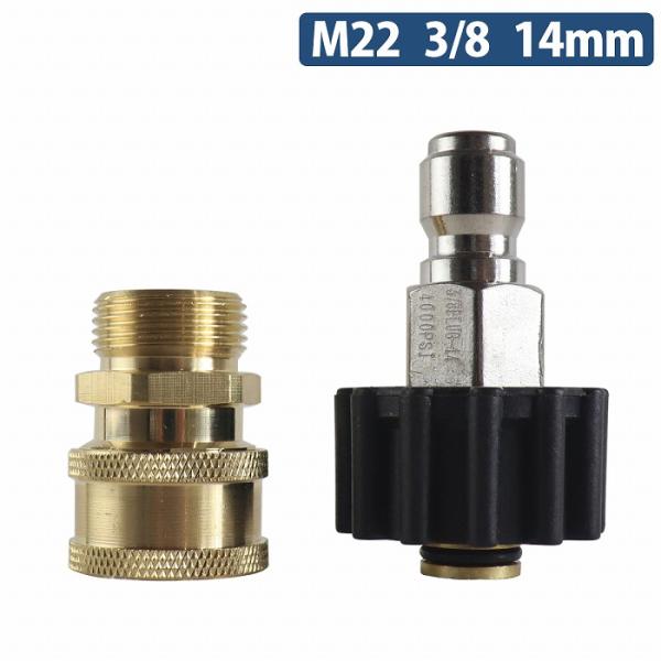 高圧洗浄機 3/8 M22 14mm ワンタッチカプラー 変換器 オス メス セット 高圧ホース ワンタッチ カプラ 取付 接続 変換 汎用