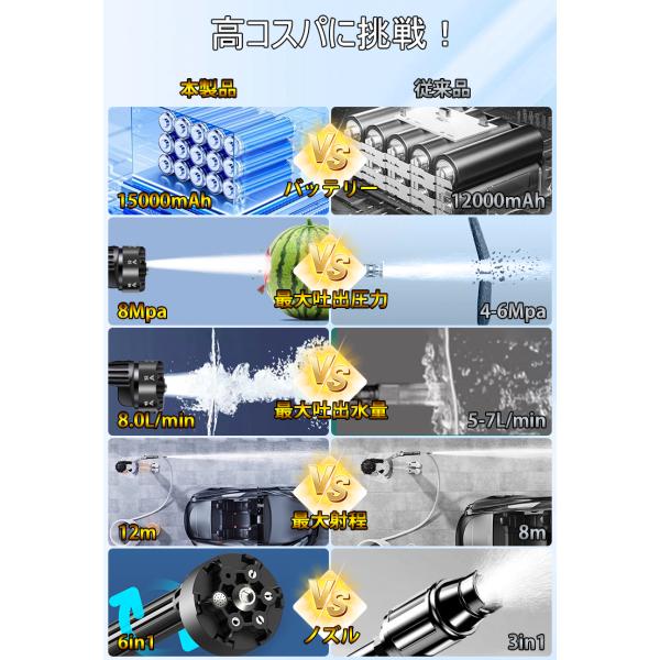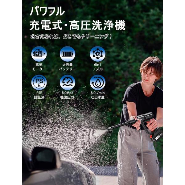15%OFFクーポン 高圧洗浄機 コードレス バッテリー*1個 充電式 大容量 マキタバッテリー対応 6in1ノズル 高水圧 8Mpa 家庭用 洗車 掃除 アウトドア 軽量
