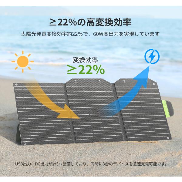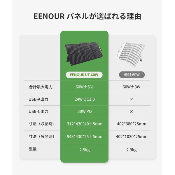 EENOUR ソーラーパネル60w 22%転換率 折りたたみ式 急速充電 ソーラーバッテリー充電器 太陽光発電 ポータブル電源 防災セット 爆買