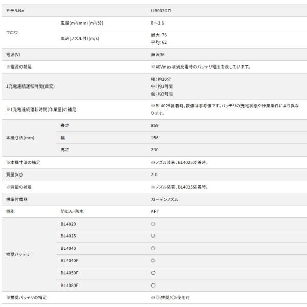 マキタ UB002GZL (本体のみ) (バッテリ・充電器別売) 40Vmax 充電式ブロワ makita