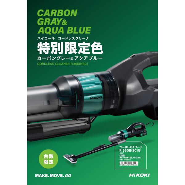 ハイコーキ コードレスクリーナー 2段サイクロン式 R36DB(SC)(NNAB) 限定色 カーボングレー&アクアブルー