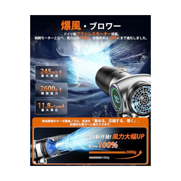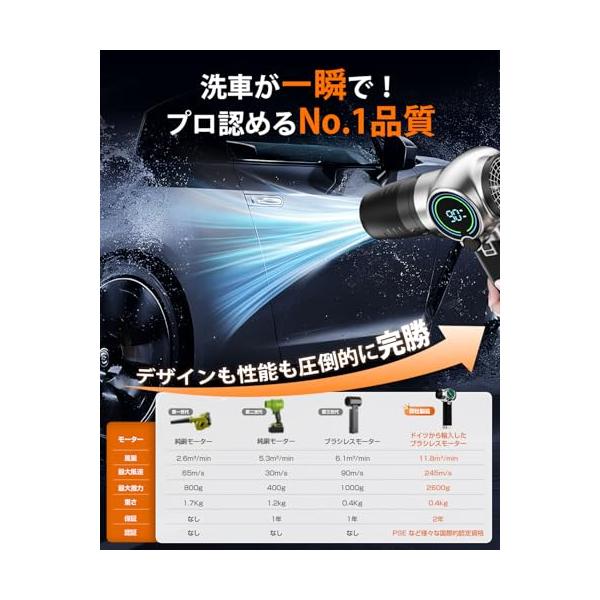 ブロワー 強力 洗車 Semtyait新登場【プロ監修・2600g超強推力・245m/s究極の爆風】ぶろわー エアダスター【ドイツ レッド?ドッ