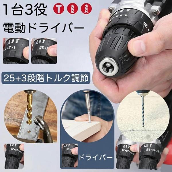 電動ドライバー 小型 24V バッテリー付き 無断変速 正逆切替 25+1段階トルク調節 トルク 六角 電動ドリル 初心者で DIY家具組立て工具セット 一人暮らし 実用