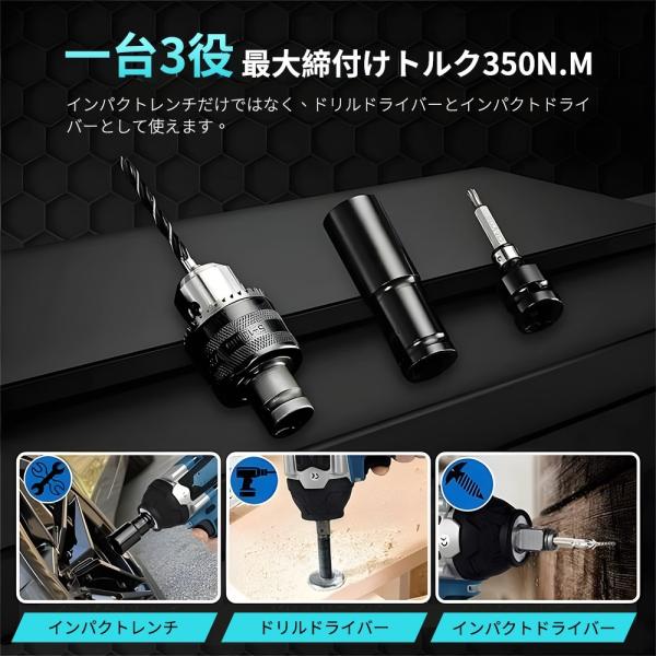 インパクトドライバー インパクトレンチ 1台3役 25本ビット マキタ互換 無段変速 正逆転両用 軽量1.2kg 最大トルク350N.m ブラシレスモーター 過負荷 過熱保護