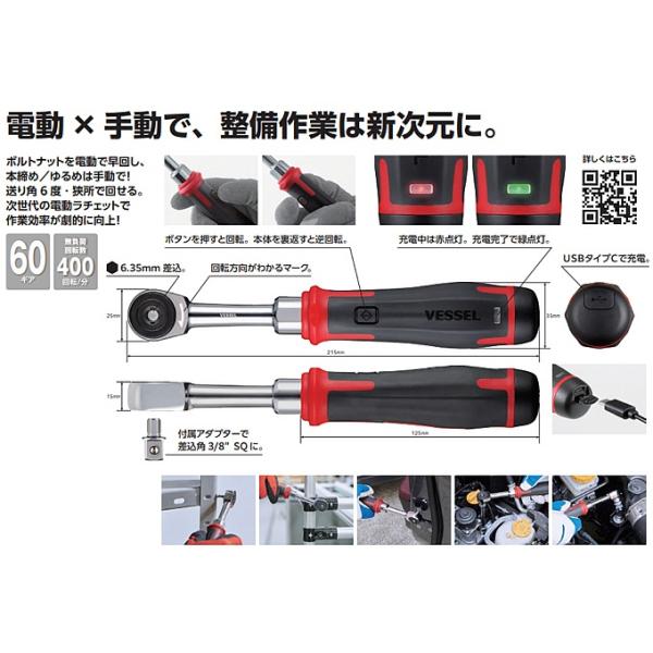 在庫有 400ER3 ベッセル(VESSEL) 電動スリムラチェット 差込6.35mm インボイス制度対応 代引発送不可 税込特価