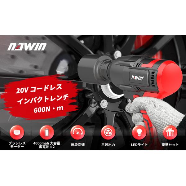 ナウィン 充電式インパクトレンチ 電動インパクトレンチ 600N・m コードレス 4.0ahリチウム電池2個付