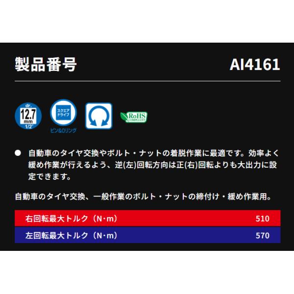 TONE エアーインパクトレンチ ツインハンマー トルク 570N.m AI4161
