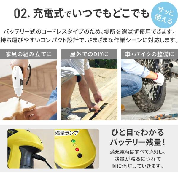 電動ドライバー 小型 充電式 46点セット LED付き 女性 電動工具 ビット ドライバー ドリルドライバー コンパクト 収納ケース付 DIY