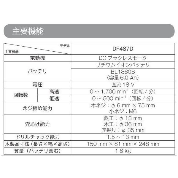 マキタ DF487DZ + BL1860B + DC18RF 18V ドリルドライバー 本体+6.0Ahバッテリー×1本+充電器 ( DF487DRGX )